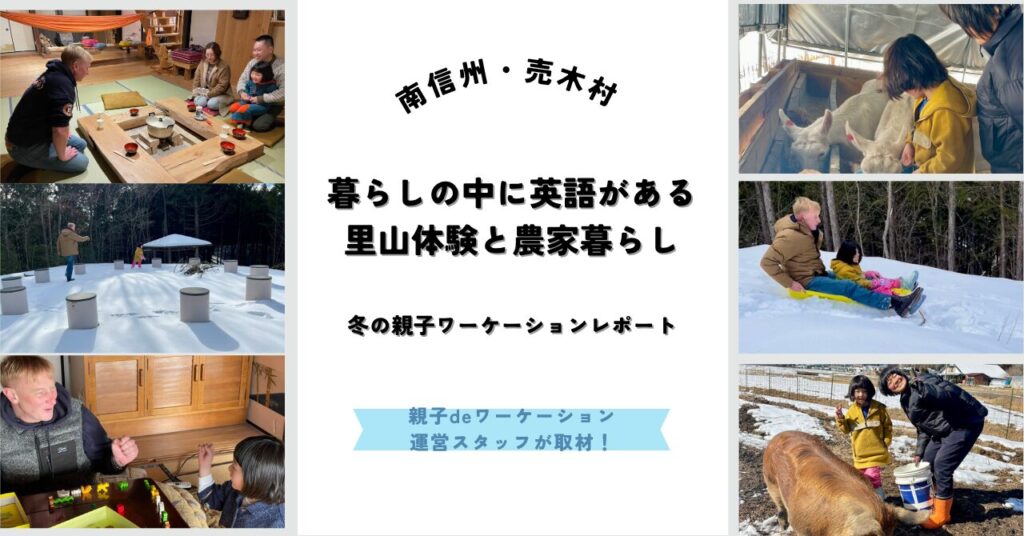 長野県の最南端に位置する、人口約500人の小さな村「売木村(うるぎむら)」。夏はクーラーいらずの避暑地として知られるこの地に、首都圏から小学1年生の女の子(ココちゃん)とご両親の3人家族が、2泊3日の親子ワーケーションに訪れました。「冬らしい雪あそび」と「英語環境」を求めて参加したご家族の、特別な3日間の様子をレポートします。