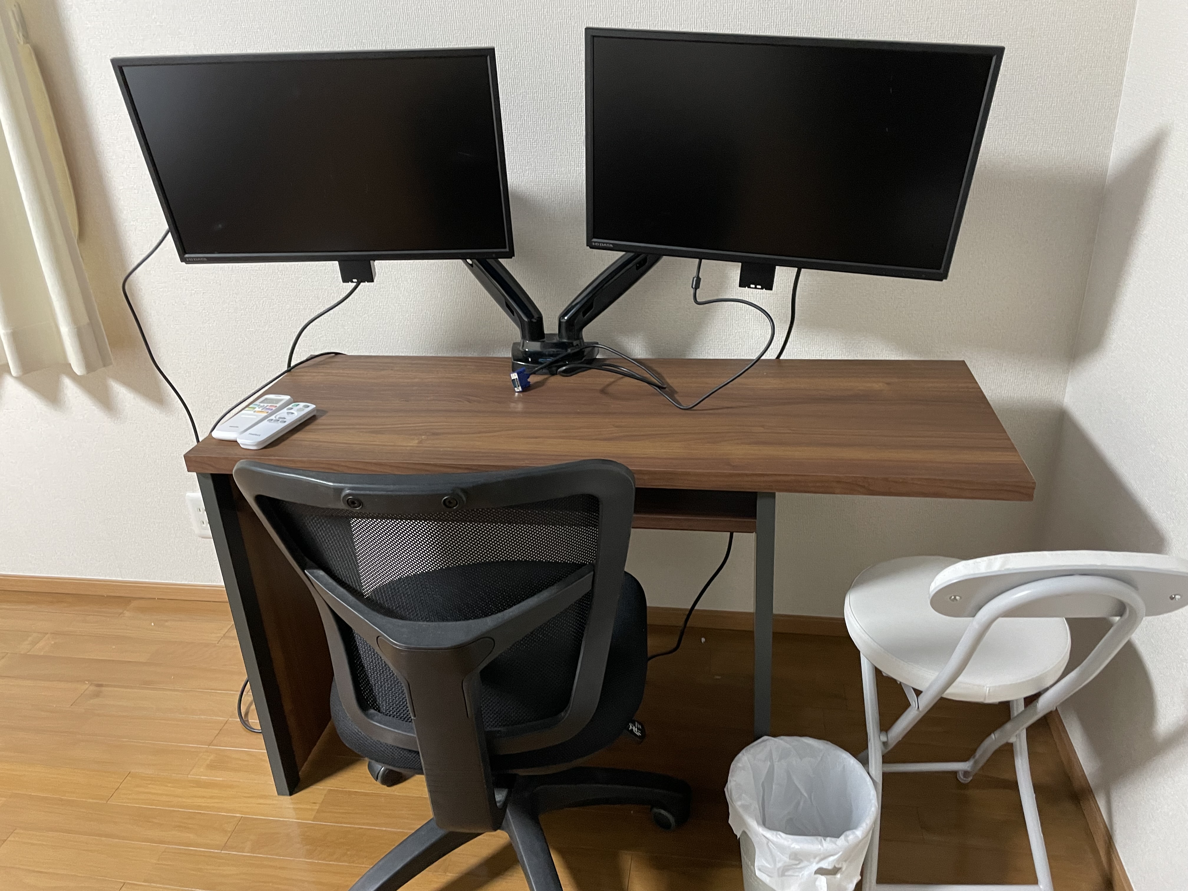 モニター2台付きの個室のワークスペース完備。