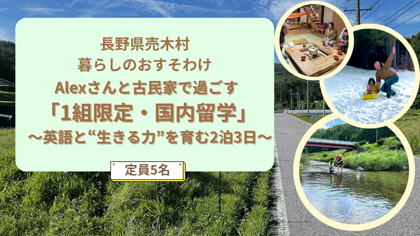 南信州・売木村 親子で古民家留学!英語と里山体験で“生きる力”を育む2泊3日 1組限定・英語初心者OK